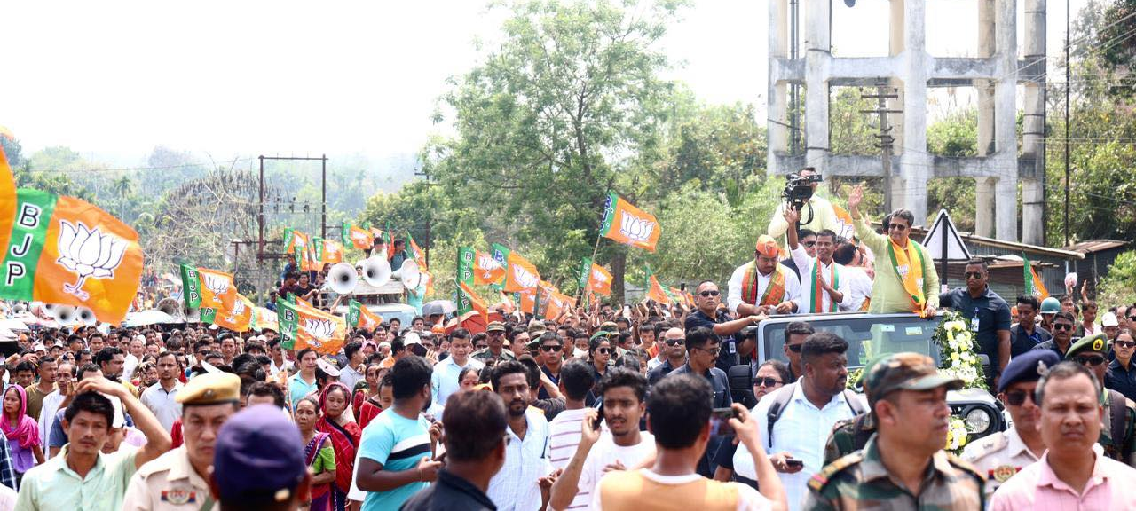 The streets of Longtharai Valley and Chailengta turned into a “sea of people” as thousands of party workers and supporters gathered. The Chief Minister accompanied three key BJP nominees to the office of the Sub-Divisional Magistrate (SDM) and Returning Officer in Chailengta: